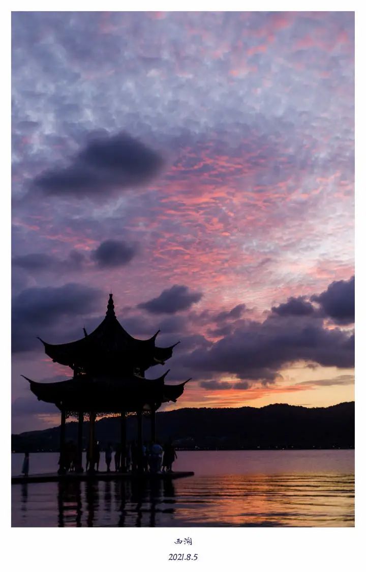 “我选择拍摄西湖晚霞,是觉得每天的晚霞都是独一无二的,时刻变化,转瞬间天空就换了颜色,快门抬起按下之间,都充满着变化和不确定。每一次去西湖边去追晚霞,那种自然的壮阔和惊艳,就像一份礼物,不知何时就馈赠。如果遇到就是遇到了,这种独一无二的美值得去追。有点像人生,既然是我们能够去做的,还是去追一下。”