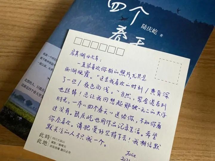 拍西湖的晚霞,为郑建华的生活增添了别样色彩。拍完之后,他会细细挑选照片,整理好发到自己的微信公众号“启真湖小火车”。曾经有粉丝专门寄来明信片和一本书,说自己很喜欢他拍摄的西湖晚霞,鼓励郑建华坚持下去。