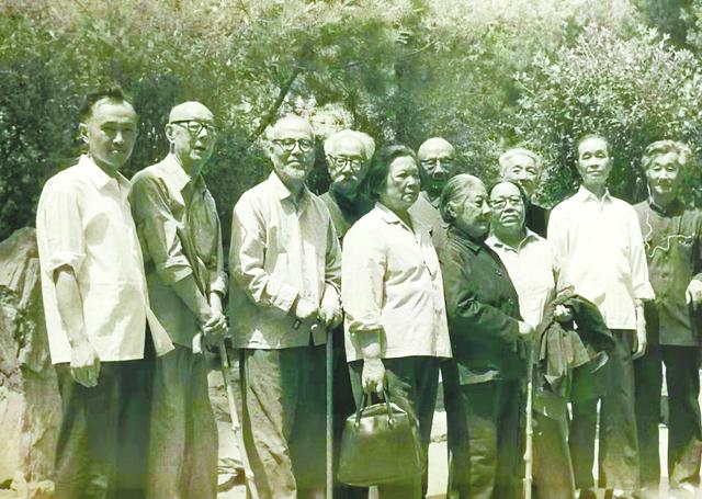 1975年,夏承焘(左三)与友人在北京西山。来源:北晚在线