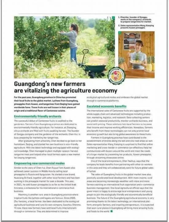 前不久,陈慧登上美国《财富》杂志(Fortune Magazine),作为广东新农人的代表,她与“菠萝妹妹”王小颖的照片一同被印在杂志上。“菠萝妹妹”是广东本土农业网红,被称为广东版李子柒,徐闻菠萝界的丁真。