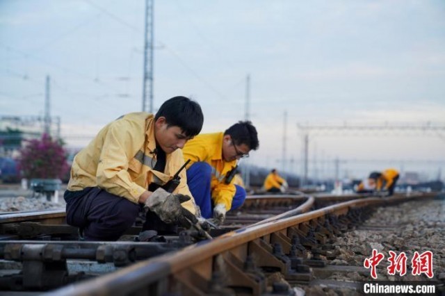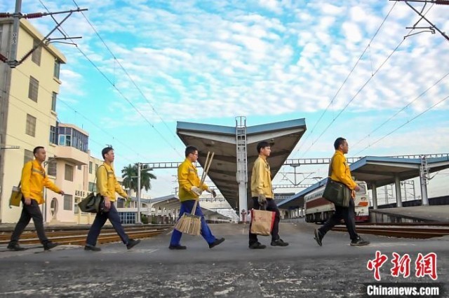 1月24日凌晨4时,湛江站四名身穿黄色线路服的作业人员正拿着扫把在线路上进行清扫。这群“清洁工”其实就是铁路信号工,他们定期为道岔“洗澡”,除的是设备污垢,保的是运输安全。