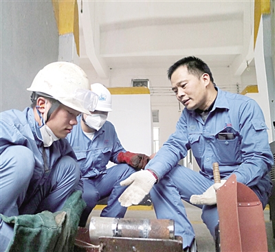 杜广华(右)向徒弟倾囊相授焊接技巧 蓝娟/摄