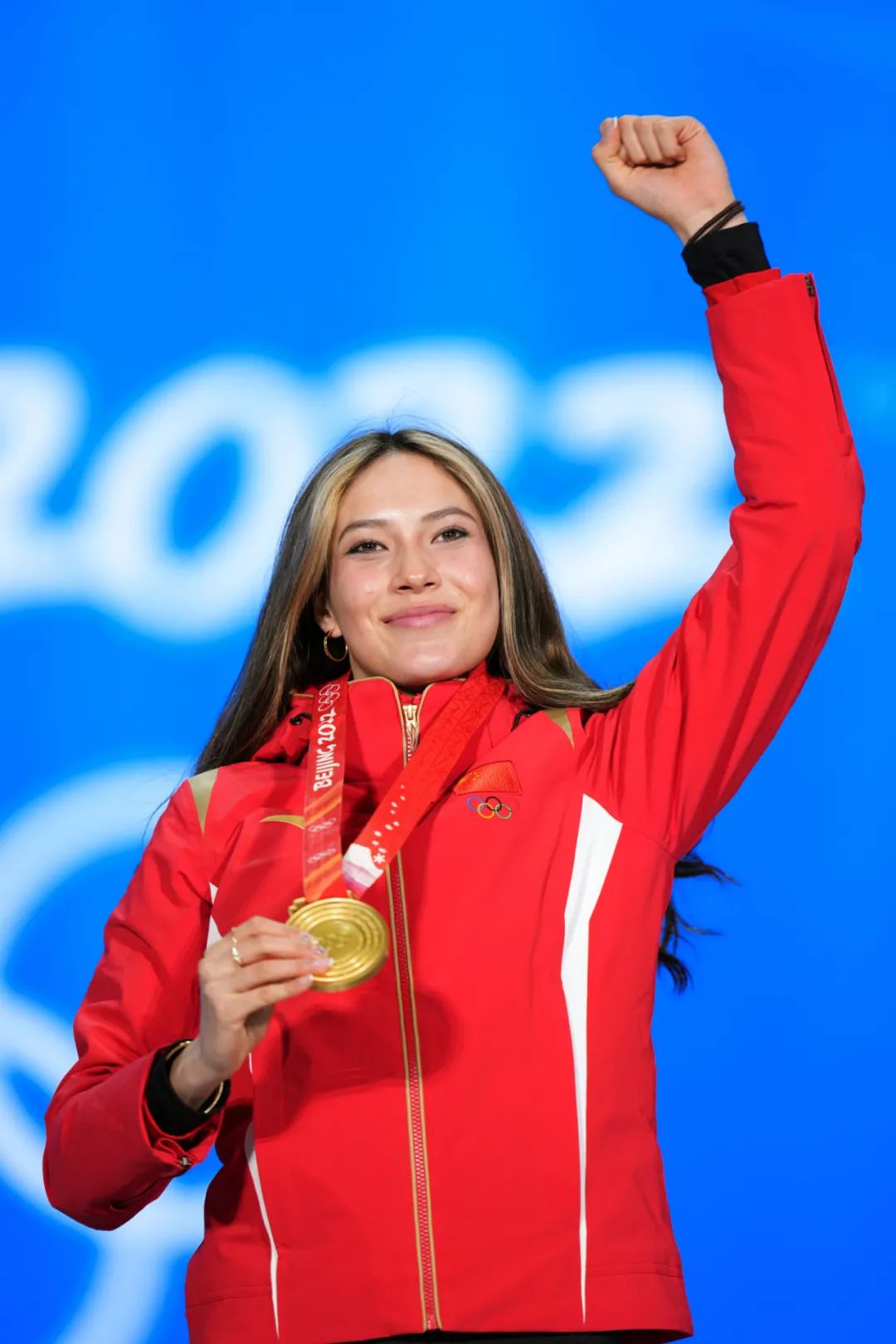 “在这里赢得金牌是最大的荣誉、最大的梦想。”谷爱凌说,“我感谢国家为这届冬奥会所做的一切。”