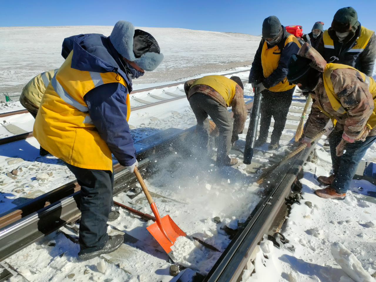 “一条条巨龙翻山越岭,为雪域高原送来安康……”自进入春运以来,唐古拉线路车间结合管辖线路、设备及天气等状况,积极克服高寒缺氧的恶劣自然环境,组织职工开展冰雪天气下的设备检养修及断轨除冰雪应急准备工作,以优异的线路设备质量,为春运安全保驾护航。截至目前,他们已处理管辖各类病害40余处,更换重伤钢轨1根,开展除冰雪3次。