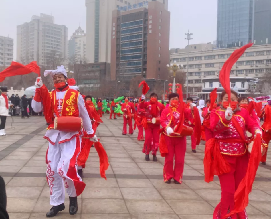当日12时,社火表演队伍前往兵团司令部、金融街等地巡游,送去了节日的祝福。