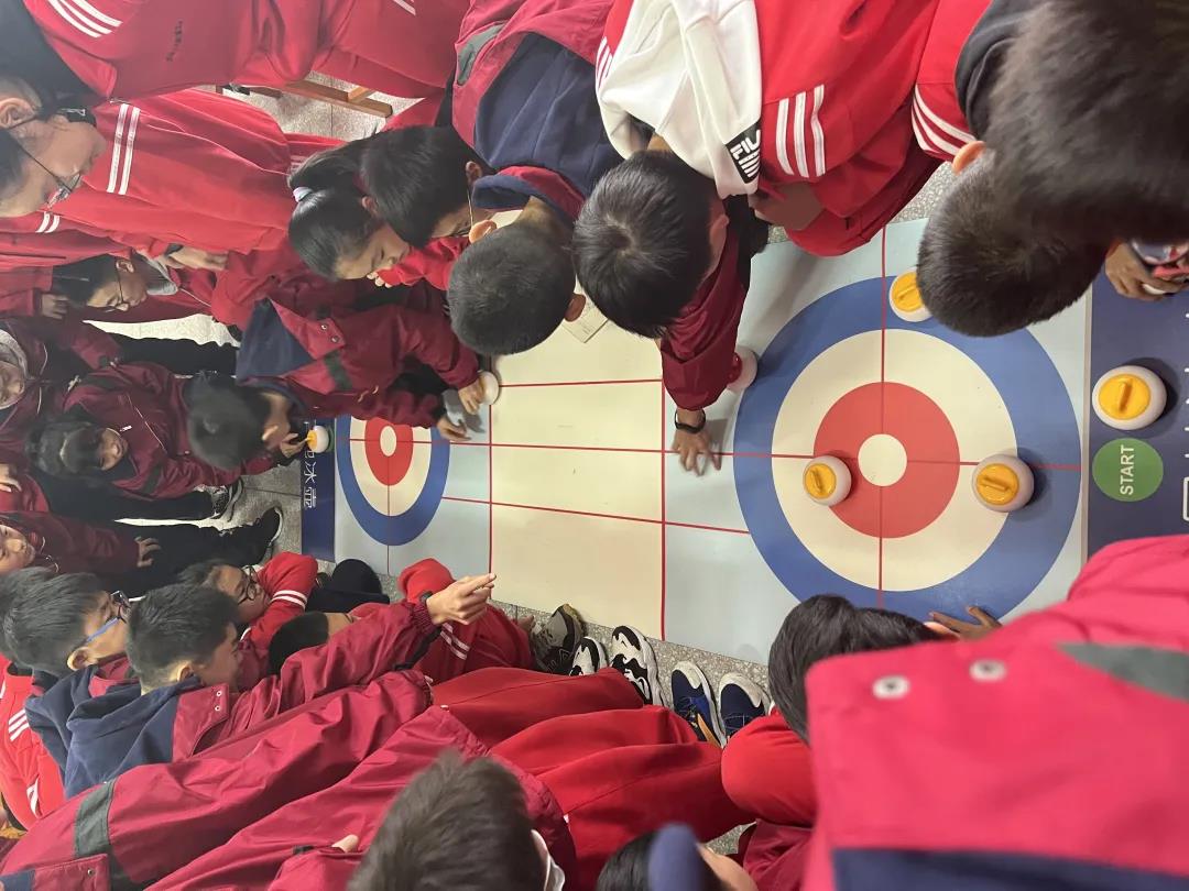 夏钊伟诧异地发现,南方孩子对冰雪运动的喜爱并不比曾经的自己少。冰壶课上,孩子们簇拥在狭窄的赛道旁,叽叽喳喳地指挥战略,投壶的孩子仔细观察线路好几遍后才肯出手。每当把对方冰壶撞出大本营外,或将本方冰壶撞向圆心时,教室里会爆发出阵阵掌声和欢呼声。