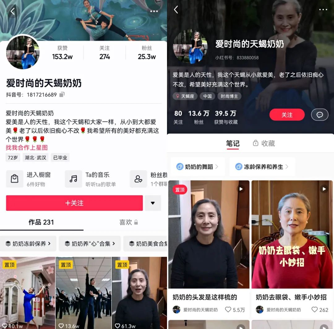 时尚、优雅、知性、自律,很难从她身上找到岁月的痕迹,“爱时尚的天蝎奶奶”就这样成为了抖音和小红书红人。注册社交平台账号以来,她收获了近40万粉丝。网友纷纷评论:“不再害怕老去”“天蝎奶奶活出了我想要的模样”……