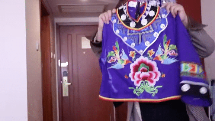杨明芳代表是土家族人,打开她的行李箱,一套做工精美的土家族服装尤为夺目。“这套龙凤呈祥的手工刺绣服饰是我们的正装,穿上它参加会议会有不一样的感觉。”杨明芳代表戴上了帽子,开心地向记者介绍着这套服装的制作过程。此外,她还带来了几包零食,手工制作的麻辣牛肉干、恩施富硒茶等。