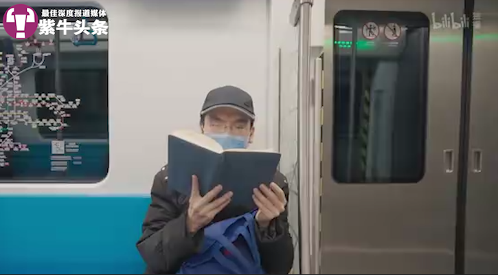 顾晓军在地铁上读书