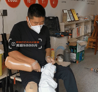 但是回到更衣处,当他脱下防护服,露出下身的两条假肢,你才会明白,他是怎样一位特殊的志愿者。