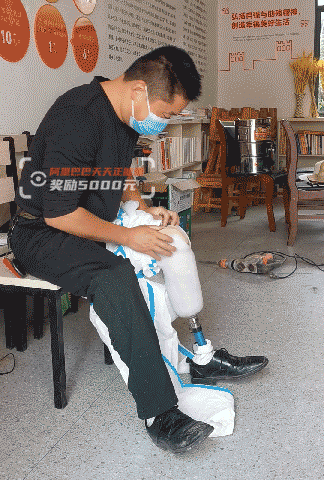 每次做消杀志愿工作前,汤俊杰的防护装备穿戴和其他志愿者有点不一样。“我要先把一条腿的假肢取下,把腿放进防护服裤筒里后,再重新装上假肢。另一条腿,也是这样穿的。”和双腿上的假肢打了14年交道,汤俊杰乐呵地说,“不需要其他人帮忙穿,我自己多花几分钟能搞定。”