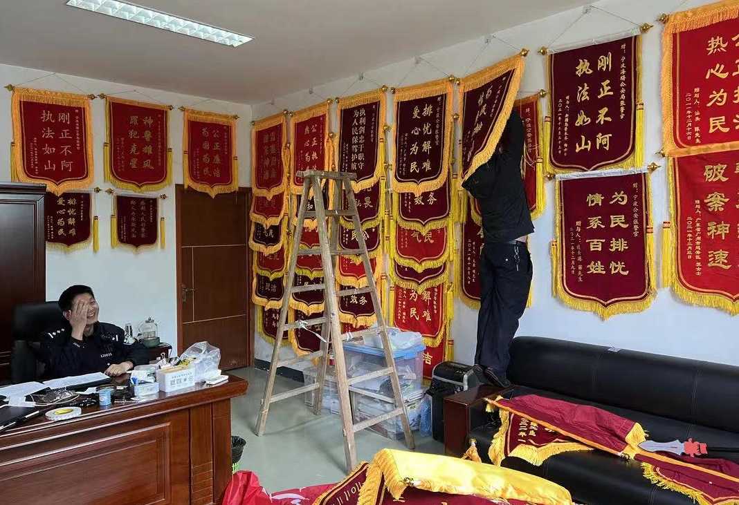 锦旗满墙的办公室