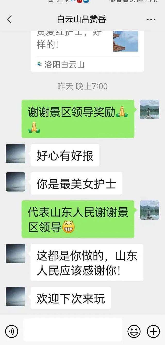 “老人家属和景区一个劲地表达感谢。”令贺爱红感动的是,在她离开河南回山东的路上,她又一次收到了老人家属和景区发来的感谢留言。