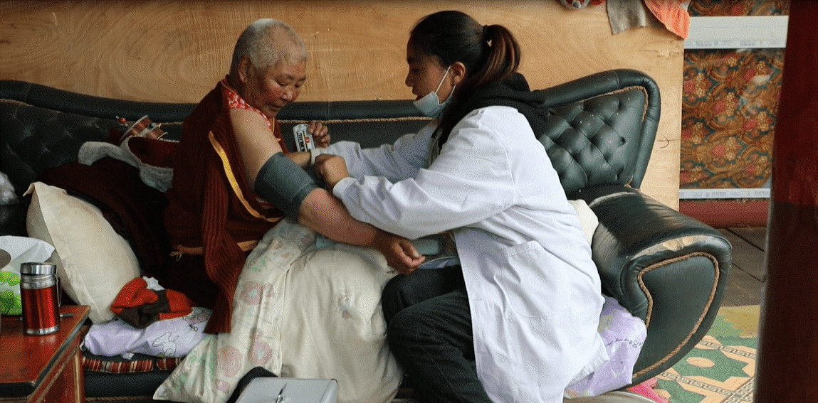 接着,医生们把一些高原常见病患者的档案整理归类,沈富琼定期上门问诊,保证药品供应不遗漏、不断档。同时,乡亲们的健康监测也更系统、及时,病情加重能尽早发现并转入大医院接受治疗。如今,每家每户谁有什么病,到什么时间该吃什么药,她了然于心。需要重点关注的病人,她一个月入户随访十几次,叮嘱他们按时吃药。每个病患家门口还贴上了“健康明白卡”,即使她不去,其他医生也能及时快速诊断。患有高血压的巴姆笑着说,她现在多了个唠叨的医生“闺女”。
