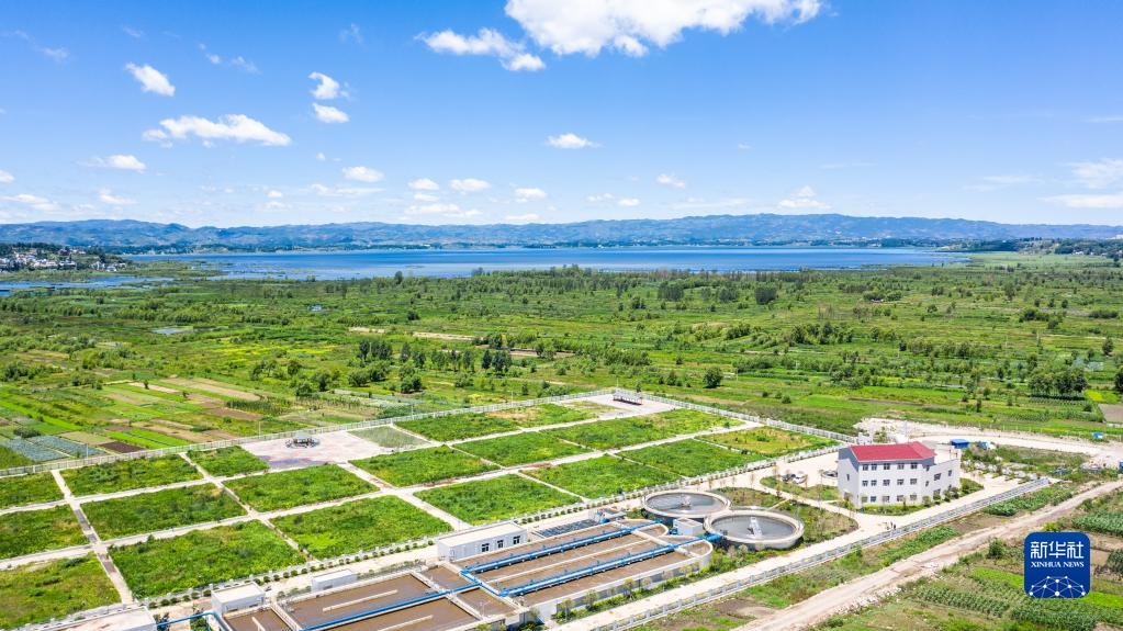 这是贵州草海国家级自然保护区的万吨生活污水处理厂(2019年6月20日摄,无人机照片)。新华社记者 陶亮 摄