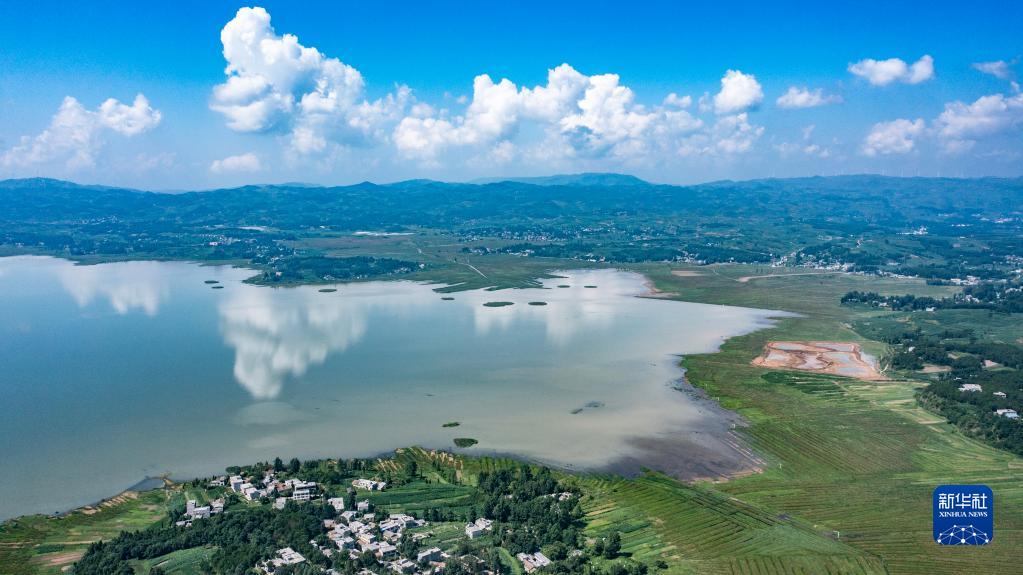 贵州草海国家级自然保护区,退耕还湖成效明晰可见(2022年7月8日摄,无人机照片)。新华社记者 陶亮 摄