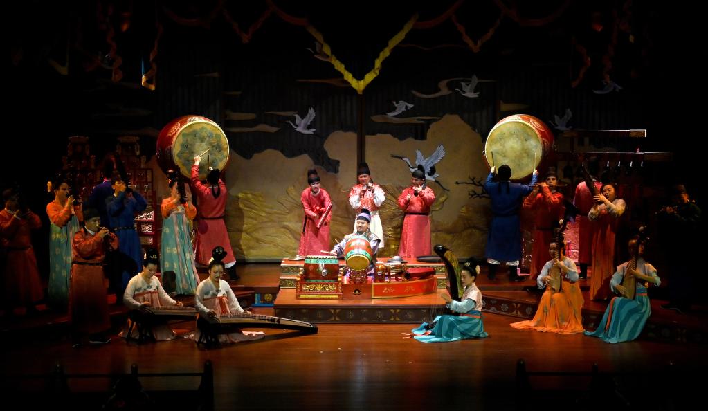 2006年,东仓鼓乐社入驻大唐芙蓉园紫云楼开始固定演出。千年之后,这个来自唐代宫廷的音律,再次回到了当年著名的皇家园林所在地。日复一日,年复一年,大唐遗音响彻园内。
