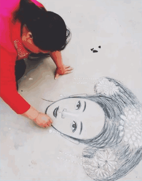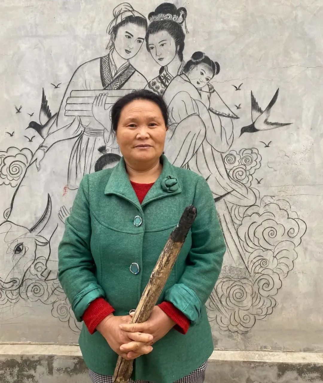 她以烧火棍为笔,以白石灰为颜料