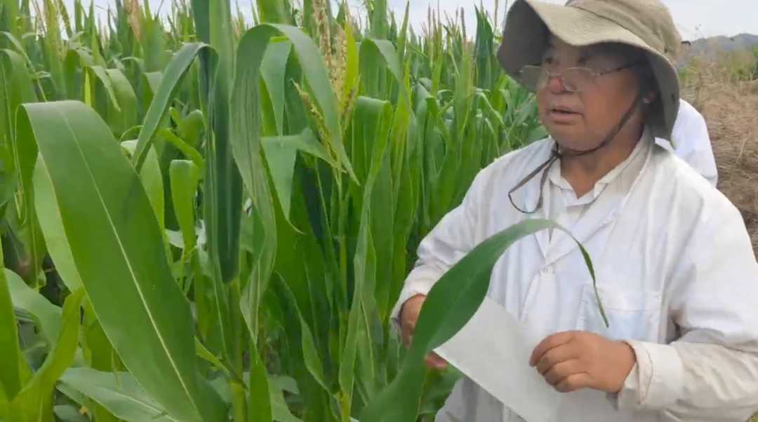 祖茂堂在玉米试验地给玉米授粉