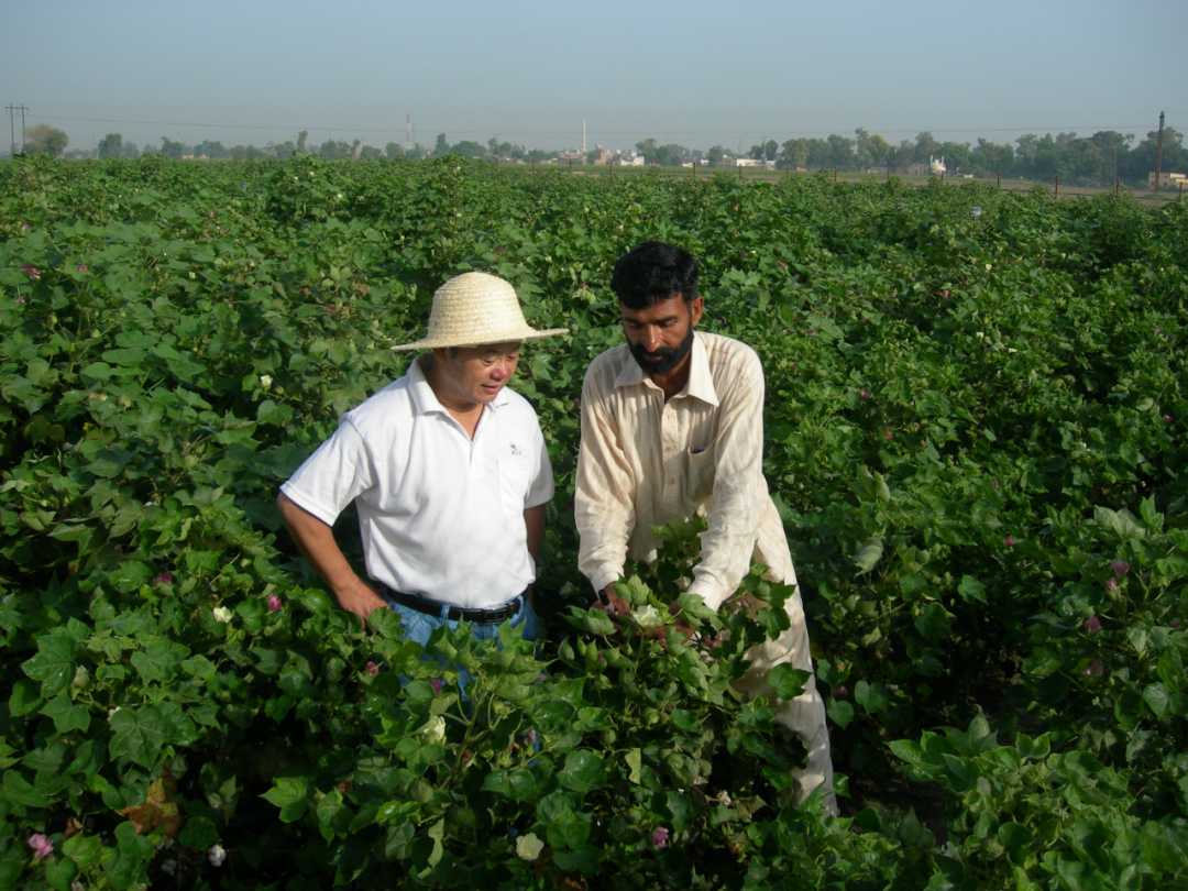 祖茂堂在巴基斯坦试验地为当地农民进行技术指导