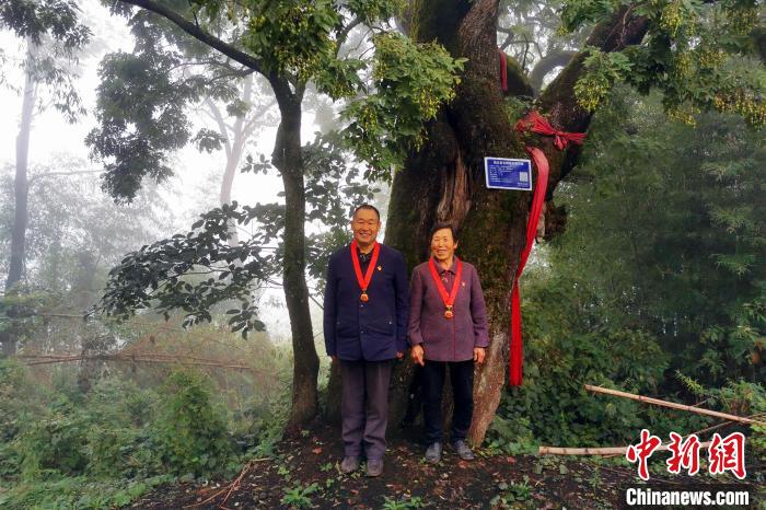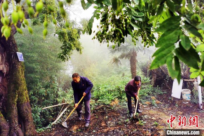 “守护这棵树,到我已是第四代了。”近日,在湖北省巴东县信陵镇土店子村,谭正恩、汪达翠夫妇在门前的古树下清理杂物。