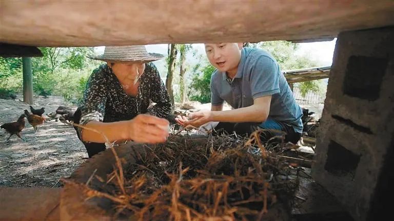 张新斌来到“外婆”家中收鸡蛋。