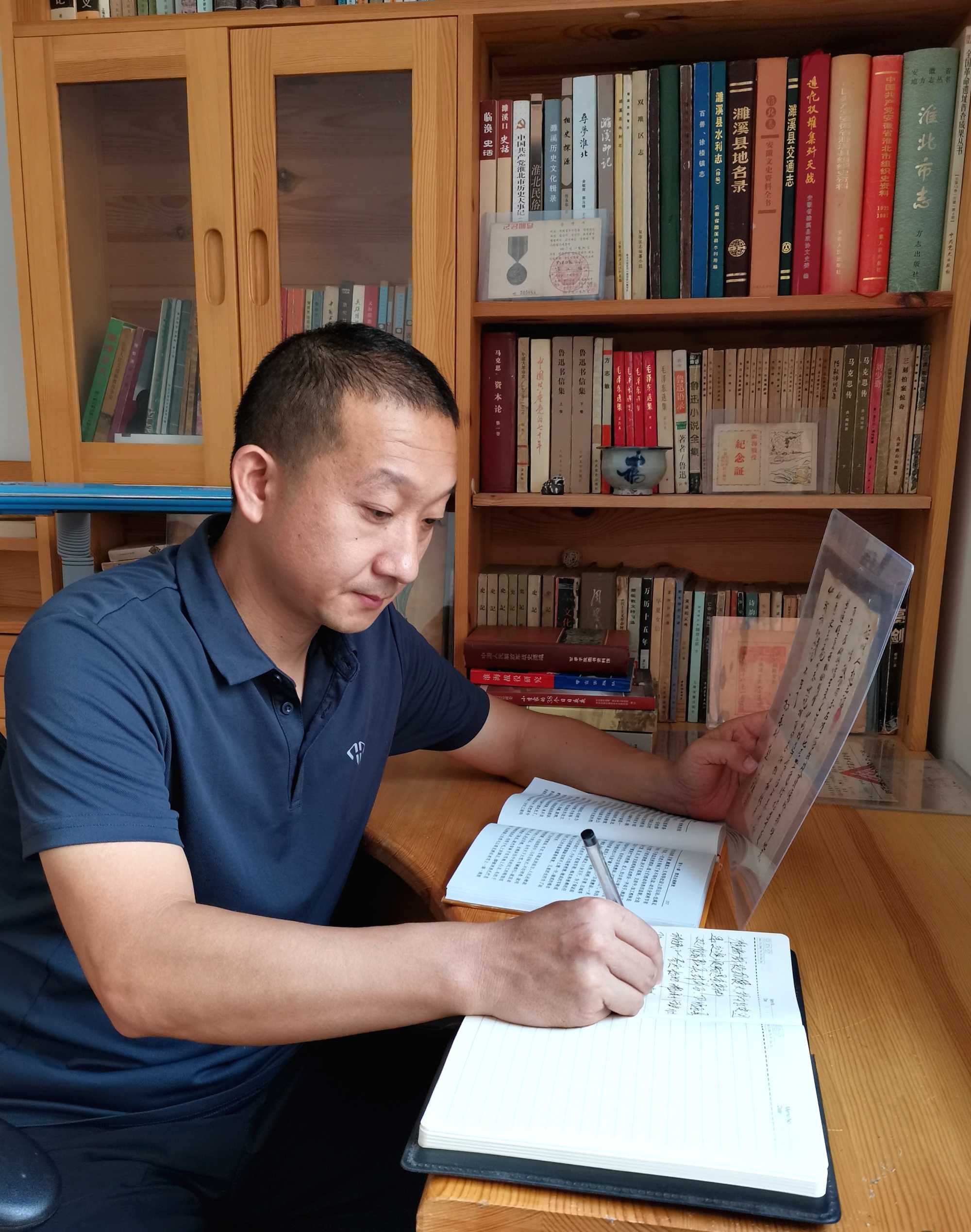 为烈士寻亲,周杨并非一时心血来潮。作为淮北矿业集团邹庄煤矿的一名普通职工,周杨同时还是一名文史爱好者和业余文物保护员。受父辈的影响,他从小就对革命文化情有独钟。1997年开始,周杨就潜心研究红色文化,购买了大量党史、军事及地方志书籍资料,考证、保护革命遗址,25年来撰写了70多篇、30余万字的研究文章。