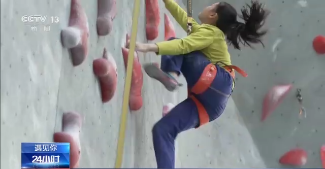 李彦郯训练的是难度项目,不光要靠她自己的努力,还要靠队友之间的紧密合作。一人攀登,同时需要一名搭档在下方进行协助和保护。到正式比赛时,搭档的位置就换成了负责保护的裁判员。
