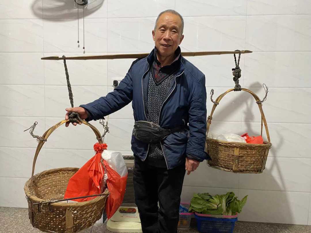 为了让记者知道是什么样的菜篮子挑出了这跳路,叶爷爷专门从家里找了篮子为我们拍了这张照。