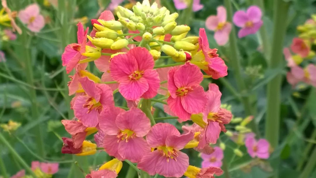 对于彩色油菜花选育,付东辉注意到,国内已有研究者开始了选育,但关键节点是一株名为“十方红”油菜花的出现。“‘十方红’油菜花由四川什邡的李孝楠老师通过将油菜花和一种远亲缘的萝卜花杂交所得。”付东辉获悉后即刻赴川求花粉。