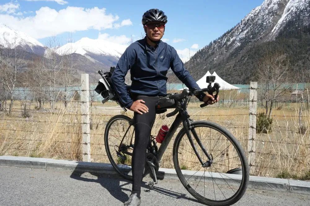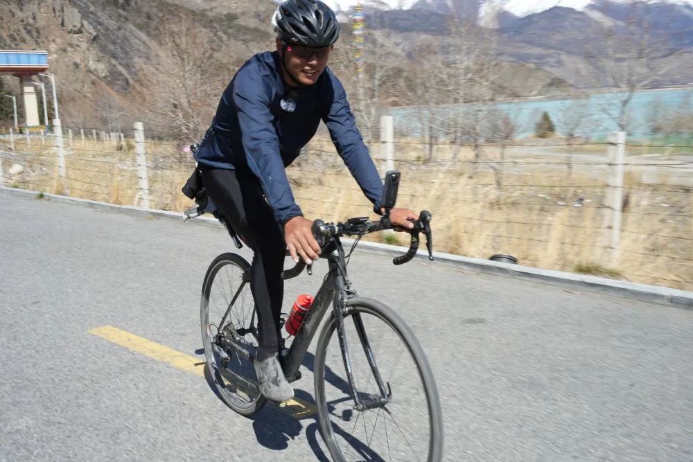 孙有志在骑行中。新华社记者 陈尚才 摄