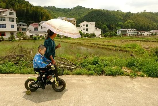 这段路只有几百米,出村,穿过田埂,再上一道斜斜的坡,就抵达那座孤零零的村小:江西省高安市华林山镇朱家教学点。因为没有脚趾,无法走太多的路,小泽只能坐在自行车上,由祖母推着上学。