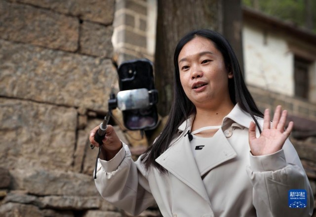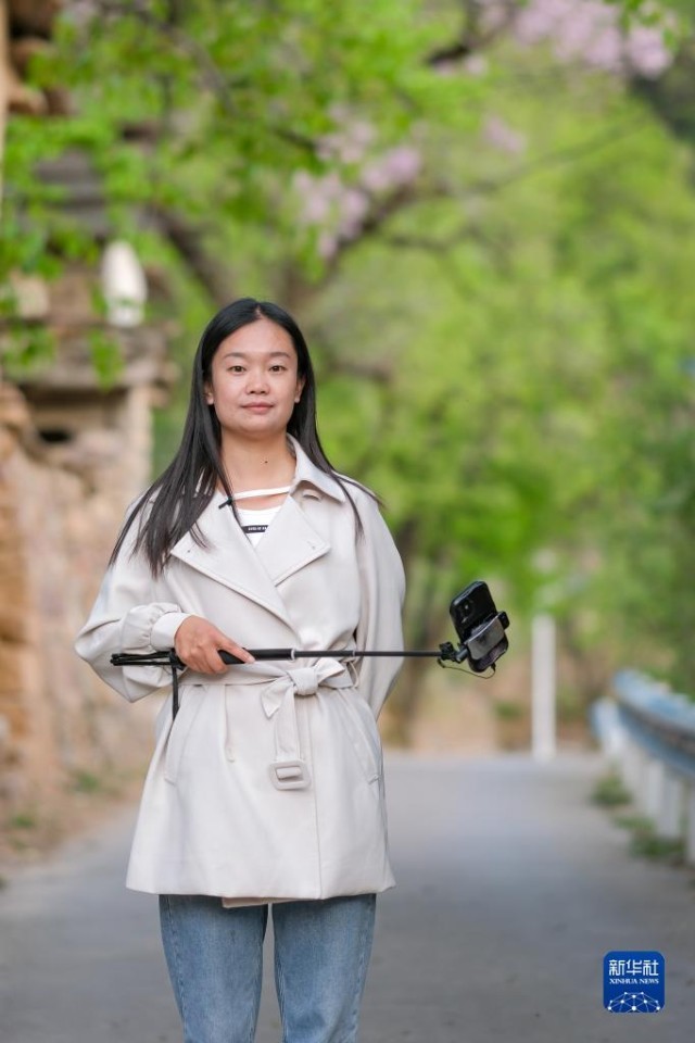 陈晓丽在村里直播(4月18日摄)。新华社记者 李安 摄