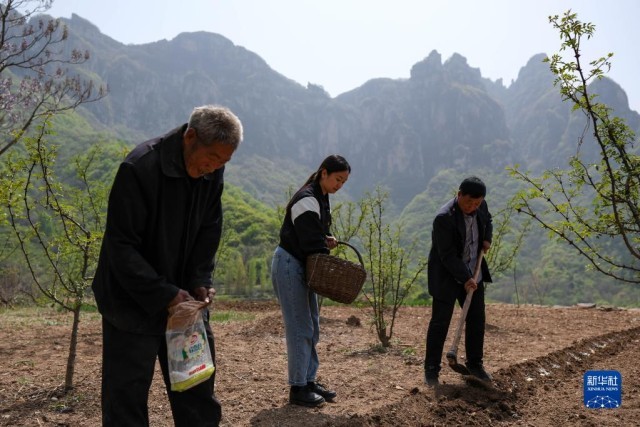 陈晓丽(中)协助村民马云昌(右)种土豆(4月18日摄)。新华社记者 张铖 摄