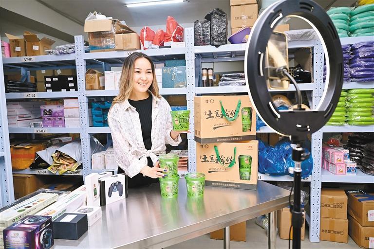 一位哈萨克斯坦网红主播在海外仓内直播带货