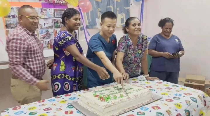中国与巴布亚新几内亚两国医护人员为泰乐举行出院庆祝活动。视频截图