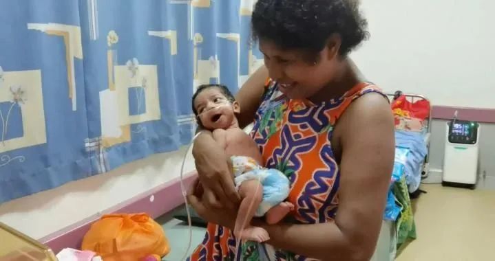 4月21日凌晨1点15分,约瑟芬腹中胎儿出现宫内窘迫,在巴新首都莫尔兹比港总医院紧急剖宫产生下一名男婴。男婴出生时胎龄38周,因羊水重度污染出现重度窒息,经过1个多小时抢救后被送入新生儿科进一步治疗。