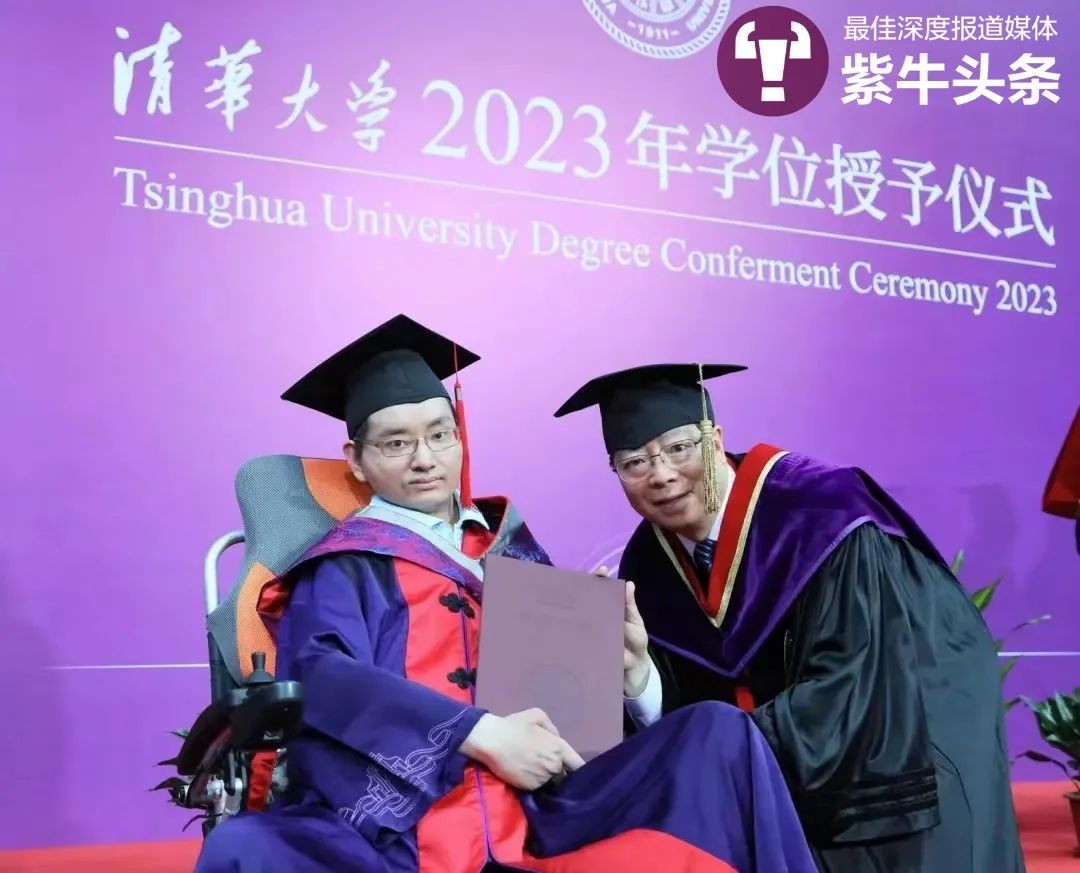 近日,清华“轮椅博士”朱晓鹏结束了十多年的求学生涯顺利毕业!毕业典礼上学校领导弯下腰,郑重地为他拨穗。1993年出生的朱晓鹏,湖南娄底人,考入清华大学刚满一年时,他突发疾病致全身瘫痪,从此坐上了轮椅。原本他是清华大学化工系的高材生,是驰骋在赛场上的篮球少年,但这场疾病中断了他的化学梦,也中断了他曾经的意气风发。经历了休学、复健、转专业、读博……十多年过去了,他终于顺利完成学业,即将奔赴下一段人生旅程——去新疆大学当老师。回首一路坎坷的求学故事,他饱含深情地写下了博士毕业论文的致谢:“我生病之后,妈妈一直寸步不离地照顾着我,至今已经十二年了,她是世界上最伟大的妈妈!”