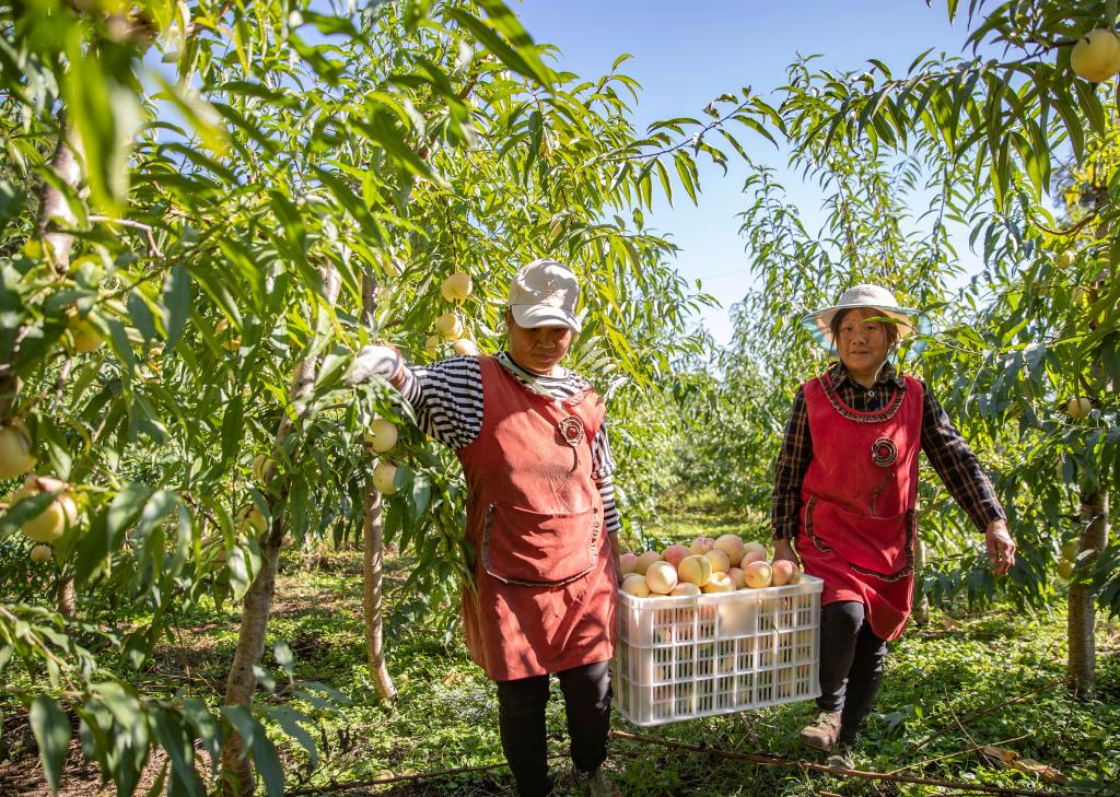 2022年10月13日,在重庆市巫溪县峰灵镇谭家村,村民在搬运采摘的冬桃。新华社记者黄伟 摄