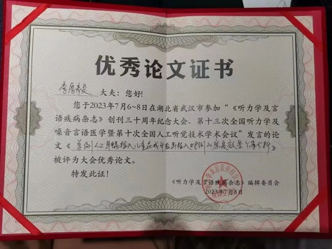 研究表明,通过8个月的康复训练,新植入耳在安静环境下对双音节词的辨识率从0提升至30%左右;新植入耳在干预2个月后逐渐显示出双耳聆听优势,尤其是在噪声环境中,当信噪比为0dB时双耳聆听优势更加明显;听觉皮层诱发电位(CAEP)评估的结果显示,在干预6个月后,观察到了新植入耳P1-N1-P2波形的分化,提示大脑皮层功能在干预后出现重组现象。
