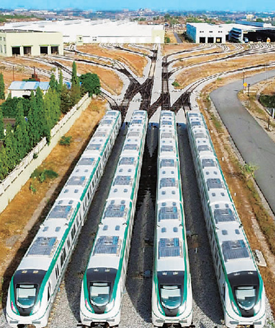 2018年,阿布贾城铁临时运营期间,项目列车整装待发。受访者供图
