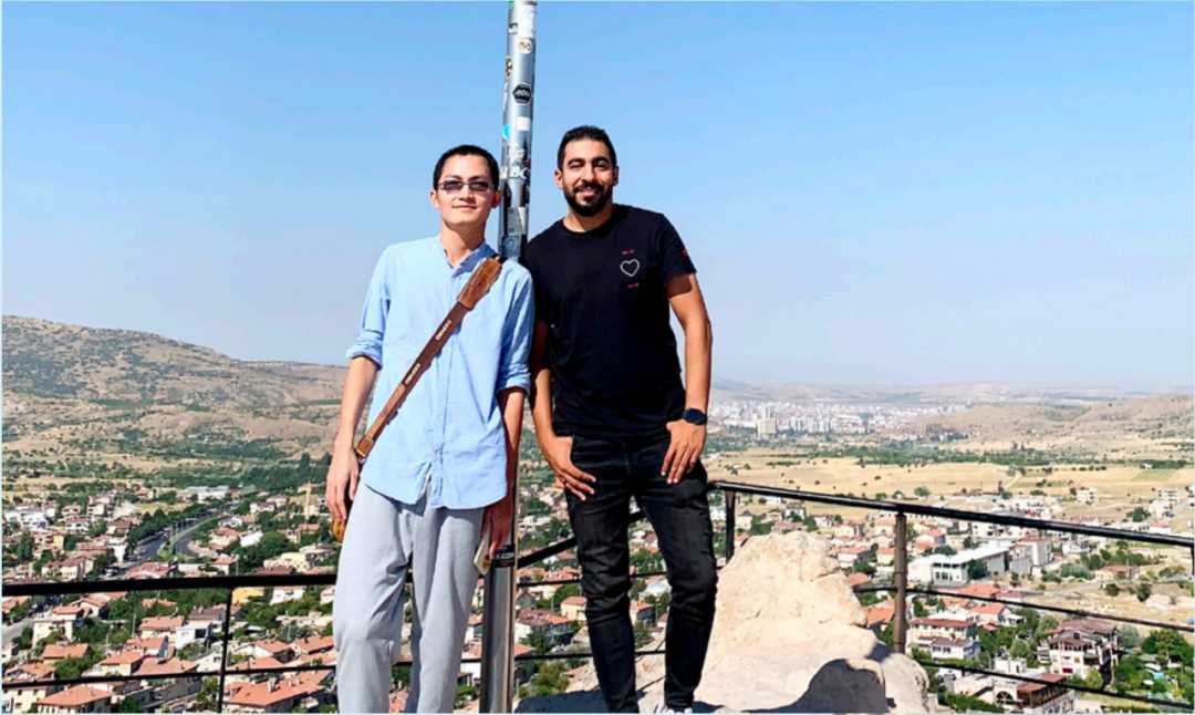 埃及青年巴塞尔和中国工程师张亮(左)合影。
