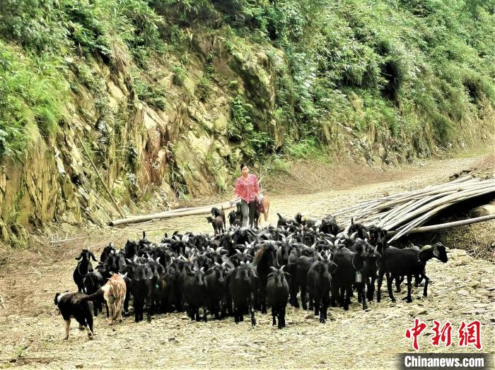 易文言的妻子黄有芳正在京华村山上放羊。受访者供图