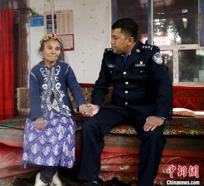 10日,新疆莎车县村警阿力木·尼扎木敦看望孤寡老人。陶拴科 摄