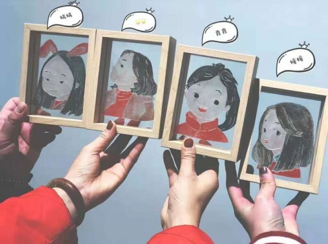 四个小姐妹定制的皮影画像。