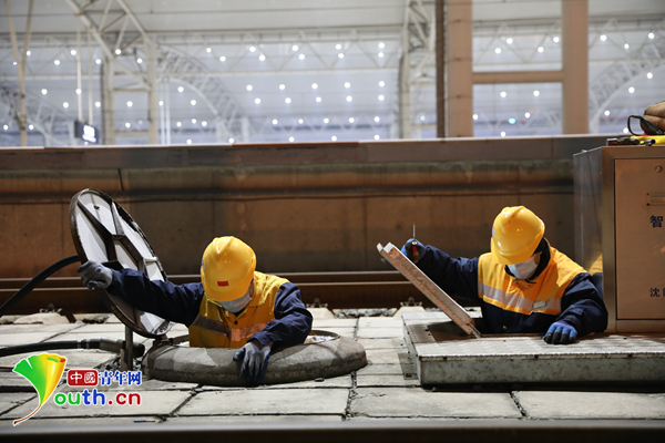 1月21日凌晨0时20分,三名铁路人在长春站内高铁站台下不停地忙碌着,掀开上水井盖,钻进井内查探,抽出水管排水等一系列动作,有条不紊地进行着。他们头戴黄色安全帽,化身铁路“马里奥”,在深夜出动,保障着高铁列车的用水供给,他们是中国铁路沈阳局集团有限公司长春房产段客车给水作业队成员。