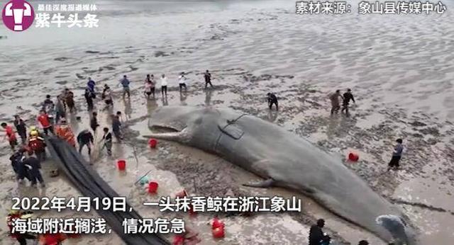 4月19日,一头体长19米、体重约60吨的鲸鱼搁浅在浙江省宁波市象山县半边山海域附近引发全网关注,在当地渔政部门及水生野生动物救助中心等众多救援力量介入救助后,20日凌晨5点30分左右,搁浅鲸鱼被拖船拽回大海,自主游回深海,恢复自由。据官方消息称,此次搁浅的鲸鱼经判断为抹香鲸,系国家一级保护动物,此前国内并没有救助搁浅大型鲸鱼成功的案例。救援人员告诉扬子晚报紫牛新闻记者:“救援时已做好最坏的打算,鲸鱼的求生欲打动了现场所有人。”