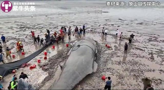 巨大的鲸鱼搁浅,救援人员第一时间赶到