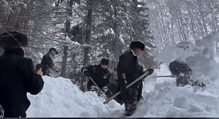 他们扔下雪铲