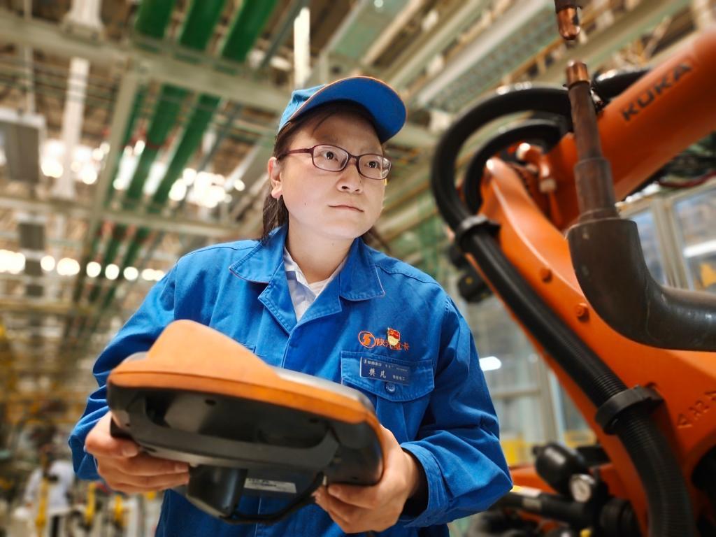 与传统电工不同的是,她维修的是自动化生产线上的机器人,通过一组组程序控制着车间里的庞然大物。